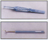 The Donnenfeld set consists of a spatula and titanium forceps. You use the forceps to hold your patient's elevated LASIK flap, while using the spatula to massage the surface and undersurface of the flap.