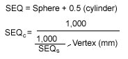 Step 1: Determine the sphero-equivalent refraction at the corneal plane (SEQc). To do this, use the sphero-equivalent refraction at the spectacle plane (SEQs) at a given vertex, where