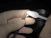 Back in the days when we first started using diamond blades for radial keratotomy (RK), we took the diamond blade and shoved it into a little peanut or a little 4 by 4 to clean it at the end of the case. This is the wrong thing to do -- it's guaranteed to damage the blade! In fact, the blade must never touch anything except tissue and fluids.