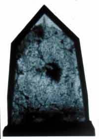 - Inspect the diamond blade periodically under a microscope, looking for protein debris. (See picture) Once a blade gets as bad as the blade on the right, it's less effective than a dull metal blade. (An old RK microscope will provide high magnification for this purpose.)