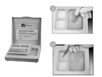 The System consists of a reusable cradle. The cradle accepts disposable cleaning packs. Each pack contains one cleaning well and two rinsing wells, and can be used for about 15 cleanings.