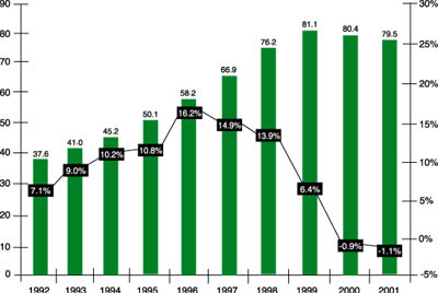 Total HMO Enrollment and Growth Rate: Jan. 1992 to Jan. 2001