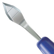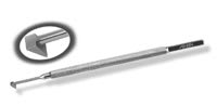The Micro-Hoe features a semicircular tip with a beveled edge; it's designed to lift the precut edge of the epithelial flap. Afterwards, you can use the Epi-Peeler to peel and roll back the remaining portion of the flap. The Epi-Peeler has a 1 x 5-mm tip with semi-sharp edges on both its narrow and broad contact surfaces.