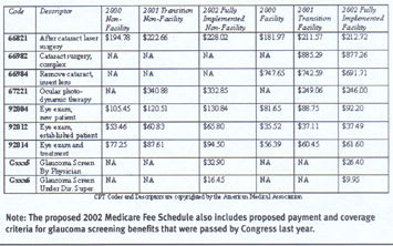 Note: The proposed 2002 Medicare Fee Schedule also includes proposed payment and coverage criteria for glaucoma screening benefits that were passed by Congress last year.