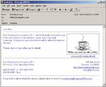 Einstein Medical's IMPACT makes it easy to create attention- getting, personalized e-mail messages using templates and focused mailing lists. A sample result is shown below. |