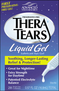 New TheraTears products. Advanced Vision Research will introduce two new products under its TheraTears brand in January. TheraTears Liquid Gel is a lubricant eye gel for nighttime use, or for dry eye patients who need a longer-lasting protective film during the day. TheraTears Nutrition is a fortified flaxseed oil supplement for dry eye relief. TheraTears Nutrition contains eicosapentaenoic acid (EPA)-enriched flaxseed oil in softgel capsule form. Advanced Vision Research says this formulation decreases meibomitis, augments the oil layer of the tear film, and stimulates tear secretion.