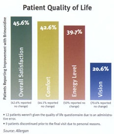 - there was a mean improvement in forced expiratory volume with brimonidine, compared with topical beta blocker therapy, of 26.2 liters/minute