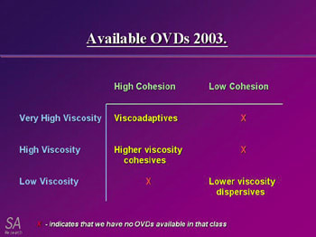 When we take cohesion into consideration, (See chart above.), we see that there remain many unexplored areas of possible OVD development. Undoubtedly, future research will explore these areas, and we will examine the surgical utility of these new potential OVDs as they are developed.