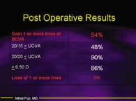 "We've never seen this before in refractive surgery. These results allow us to charge a much more reasonable fee," more in line with costs and a worthwhile profit margin.