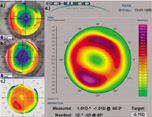 To improve the patient's vision, customized corneal correction with the Schwind ORK corneal wavefront platform was planned. (See image below.) The approach was to increase the optical zone, decrease spherical aberration, and reduce the previous overcorrection to 0.75D of monovision to improve the patient's reading ability. This approach was successful. The target was achieved. Treatment resulted in a stable refraction, 20/20 uncorrected acuity and elimination of his complaints. Re-treatments with the help of customized correction will be a significant portion of future practice.