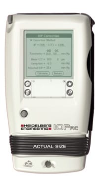 Heidelberg Engineering debuted its FDA-approved handheld CCT pachymeter, the IOPac. The IOPac is based on Palm technology and specially designed for glaucoma care. It automatically corrects IOP calculations using one of five built-in formulas that reflect established data on the correlation between central corneal thickness and Goldmann tonometry. Physicians can create up to three custom formulas for individualized correction and store up to 1,000 patient records.