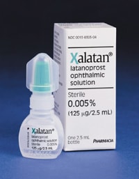 Latanoprost ophthalmic solution (Xalatan) is an ocular hypotensive agent for treating open-angle glaucoma or ocular hypertension. Xalatan is clinically proven to lower IOP, and Pfizer says it's the most prescribed IOP-lowering agent in the United States. (IMS Health, NPA data, March 2003 through February 2004.) Xal-Ease is an easy-to-use aid that helps patients open the Xalatan bottle more easily and place the Xalatan drops in their eyes. The Xal-Ease eye drop delivery aid is free, and can be ordered by ophthalmologists on the Xalatan website (www.xalatan.com), or by calling Pfizer Drug Information and Medical Services at the phone number listed below.