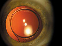 In clinical trials. Several IOLs are under investigation: ► ThinOptX is currently setting up investigational sites for a multicenter FDA clinical trial -- the first large-scale study of the Thinlens, an ultra-thin IOL designed to be injected following microincision phacoemulsification. Enrollment of 400 patients at 10 sites should begin shortly. Because the Thinlens doesn't use a conventional optic design, it can be placed through a 1.5-mm incision, and puts minimal pressure on the incision during insertion. It uses peripheral rings to minimize the mass of the lens; the rings also correct spherical aberration in the perimeter, while minimizing spherical aberration and third-order aberrations like coma overall. The 50-micron tips of the lens haptics are designed to roll, helping to prevent decentration after implantation, and the lens has been shown to provide between 1.5 and 2 diopters of accommodation in an ongoing multisite study. The Thinlens comes with a unique inserter system, the ThinRoller Injector, that loads and places the lens in three steps, uses no viscoelastic, and does not require enlarging the 1.5-mm incision. (The company reports that the injection system is a major selling point outside the United States.) A spokesman says the company plans to bring a multifocal version of the lens, and a new Thin Phakic IOL, to clinical trial by the end of 2004. ► Eyekon Medical, based in Clearwater, Fla., has an acrylic IOL currently undergoing FDA clinical trials. The company notes that this lens is hydrophilic, very similar to the natural crystalline lens of the eye, which is expected to be a major selling point. ► The C-Flex IOL from Rayner (Hove, East Sus-sex, UK) is currently in clinical trials here in the United States. The C-Flex is a hydrophilic acrylic lens with a modified edge designed in collaboration with David Apple, M.D. Mark Packer, M.D., has been implanting the lens as part of the trials. He reports: "In my experience the lens remains exceptionally well-centered, and the capsule continues to look perfectly clear." (See photo, above.) "The patients implanted with this lens at our center have so far not complained of dysphotopsia." |