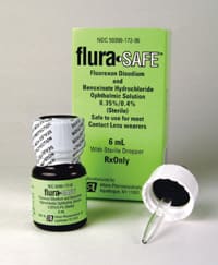 Accutome is distributing Flura*Safe, a combination of fluorexon and benoxinate in one bottle. The formulation anesthetizes the cornea and stains it to facilitate Goldmann tonometry, gonioscopy, foreign body removal and other procedures.