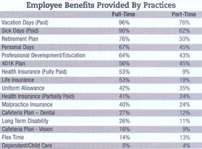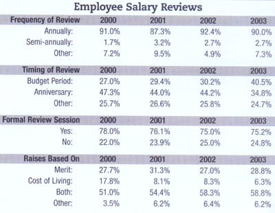 The March 2004 Stat Tracker showed the national compensation averages for ophthalmology practices as reported in the 2004 Staff Salary Survey. At right are the national averages for employee benefits and salary reviews as reported by all medical practices in the 2004 Staff Salary Survey.
