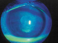 Punctate epithelial erosions and rose bengal staining have been noted on post-LASIK corneal flaps a few days to weeks after surgery.11 This surface abnormality has been seen in patients with no evidence of dry eye preceding LASIK and is likely neurotrophic epitheliopathy as there is no difference in mean tear production between patients who have significant punctate epithelial erosions and rose bengal staining and those who don't. Signs and symptoms of LASIK-induced (presumed) neurotrophic epitheliopathy usually resolve about 6 months postoperatively, and this abnormality is more common and severe in patients with pre-existing dry eye disease.
