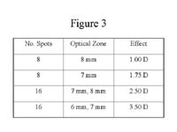 Also, if you treat with more than a 1.00D response (8 spots at 8 mm) you should preoperatively counsel the patient about monovision. However, in my experience the monovision symptoms that one sees above +1.00D usually resolve over the first 3 months, evolving to a more blended vision effect. Patients maintain their near vision ability, while the distance vision and monovision symptoms improve.