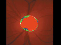 HRT imaging of the left optic disc at 18 months after trabeculectomy. Images courtesy of Mathew Sapp, M.D. |