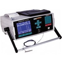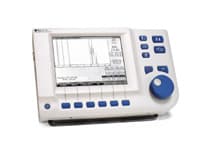 This machine is equipped with waveform analysis -- digital signal analysis -- which helps to ensure quick, precise measurements. Patient management is simplified because the instrument can store up to 100 patients' data and link the information to a PC. According to the company, custom eye types and material velocities can be programmed.