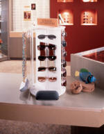 Fashion Optical Displays' new Sunwear Rotating Counter Display Package has a rotator that holds up to 16 frames resting on individual supports that keep eyewear securely in place as the display turns. The display's package includes a chain and cord holder, three small curved shelves for cases or eyewear, an attached mirror and a signage holder. Special pricing is available through Labor Day.