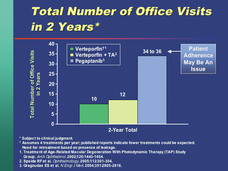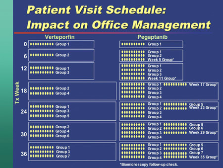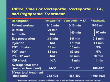 The office time difference between a verteporfin and a pegaptanib patient can be considerable. |