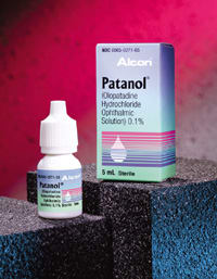 Olopatadine 0.1% (Patanol) is a multiaction antihistamine and mast-cell stabilizer indicated for the treatment of the signs and symptoms of allergic conjunctivitis. According to Alcon, Patanol is the only agent in its class FDA-approved to provide the complete range of relief from ocular allergies: itching, redness, chemosis, tearing and lid swelling. The company considers Patanol the standard topical ophthalmic anti-allergy medication, pointing out that more than 18 million prescriptions have been written, more than all other ocular allergy drops combined.