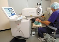 Gordon Binder, M.D., of the Gordon Binder Institiute, LaJolla, Calif., cutting a flap with the IntraLase FS laser. |