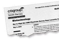 One of the examples cited by the newspaper involves a pivotal phase 3 study of Lucentis (Genentech) for wet AMD. The Seattle Times report describes consultations that the investment firm Citigroup Smith Barney held earlier this year with 26 ophthalmologists, during which Smith Barney securities analysts asked questions about the safety and efficacy of Lucentis, particularly in comparison to the recently approved wet AMD treatment Macugen (Eyetech Pharmaceuticals/Pfizer).