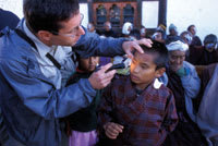 Dr. Tabin examines a young patient in the Himalayan country of Bhutan. |