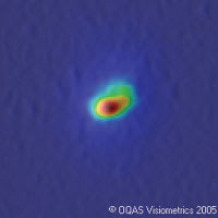 The OQAS creates two- and three-dimensional retinal images (or maps) that describe a patient's total optical system. These images, displayed on a computer screen, include the effects of light scatter and all higher order aberrations (HOA). These are now seen as essential factors in assessing vision quality.