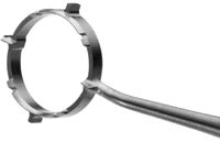 The flexible iris retractors are used to gently stretch and stabilize the iris for maximum visibility during surgery. Once the iris is hooked and retracted, these bright blue retractors are held securely in position by sliding the tiny adjustable silicone "donut" up to the limbus.