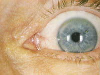 His facial appearance was ruddy with telangectasia evident at the tip of the nose, the malar area and the eyelid margins. His visual acuity (VA) fluctuated slightly between blinks but measured 20/25.