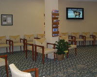 We have several plasma screen monitors in the waiting room showing travelogues and animal documentaries. It is a pleasant way for families to while away the time. |