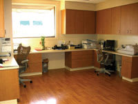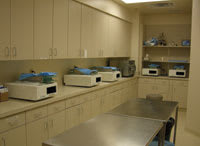 We used to have a tiny corner for our cleaning and sterilization area. The new room holds six autoclaves and plenty of counter and storage space. |