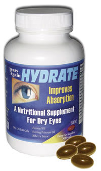 Tears Again Hydrate is a nutritional supplement for dry eyes available in easy-to-swallow soft gels. |