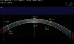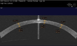 High corneal resolution scans can also be used to measure the depth of conductive keratoplasty spots and evaluate the pattern of collagen shrinkage in each spot (Figure 7).