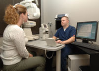 The clinic manager might preview the patient's chart, which is never missing, and then assign a technician to bring the patient back to a pre-testing room where the patient's lensometry, keratometry, objective refraction, wavefront analysis and subjective refraction are all performed in a matter of 6 to 8 minutes.