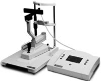 Keeler's Pulsair EasyEye handheld non-contact tonometer has a unique "seeing eye" optical system for checking patients' IOP. It may be used as a handheld instrument, or is slit-lamp adaptable and has a built-in printer. The Pulsair EasyEye's precision performance is calibrated to read within ±1 mm Hg of Goldmann tonometry. The handpiece makes the instrument an effective way to obtain IOP readings on patients who find it difficult to sit at a slit lamp. The Pulsair EasyEye is accurate, portable and relatively easy to use. There is no pre-test preparation and minimal risk of cross infection.