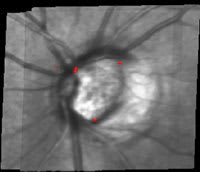 The most powerful predictor of glaucoma was the Moorfields Regression Analysis (MRA), which measures rim area and adjusts for optic disc size to determine if the eye is in the normal range. Remarkably, in some cases, the MRA was abnormal on Heidelberg Retinal Tomography (Heidelberg Engineering, Vista, Calif.) several years before any defect was detected by visual field testing or by evaluation of good quality stereo-photographs by an expert reading center. It is likely that the ocular hypertensives with an abnormal HRT at baseline already in fact had glaucoma, but at enrollment were thought to be normal, based on a normal visual field and a "normal" appearing optic disc.