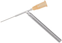 The Gillum Retrobulbar Guide assists in the controlled placement of either retrobulbar or peribulbar needles. |