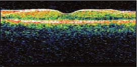 Figure 2. Normal macular anatomy showing the healthy foveal concavity and no evidence of edema or cystic changes (normal).
