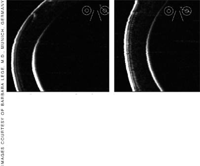 Figure. Flap made with Zyoptix XP microkeratome (left) and flap made with the Intralase FS30 (right) are similar. Images taken with Visante anterior segment, high-resolution, non-contact OCT.