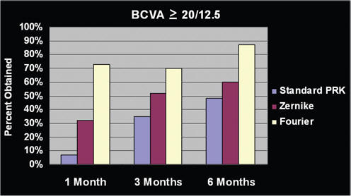 Zernike and standard PRK-treated patients achieved 20/12.5 BCVA or