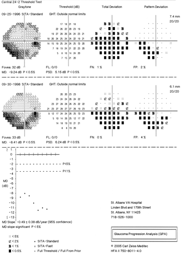 Guided Progression Analysis (GPA) software evaluates the visual field to