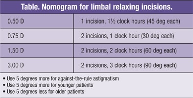 - Nichamin LD. Nomogram for limbal relaxing incisions. J Cataract Refract Surg. 2006;32:1048.