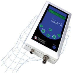■ The versatile and easy-to-use Pocket II pachymeter is programmable for refractive surgery or glaucoma screening. With this portable precision pachymeter powered by 4 AA batteries or AC power, users can easily move between exam rooms or satellite offices, says Quantel. A direct connection to a computer via the Visuscan software allows data processing of examinations. With a measurement range of 200 to 999 μm and accuracy of ±5 μm, the Pocket II is designed to measure corneal thickness in a wide variety of clinical and surgical applications. The Quantel Medical Pocket II pachymeter combines ease of use with one-touch accuracy, precision and reliability, says Quantel.