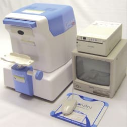 ■ Both Konan's CC-7000 and the SP-9000 have a built-in pachymeter. The device uses an electro-optical method to measure the thickness of the cornea. The CC-7000 measures the cornea thickness at the same time it photographs the endothelium. The SP-9000 model has a separate mode for increased accuracy. Pachymetry measurements are possible in five different quadrants on the cornea, which can be displayed on the readout.