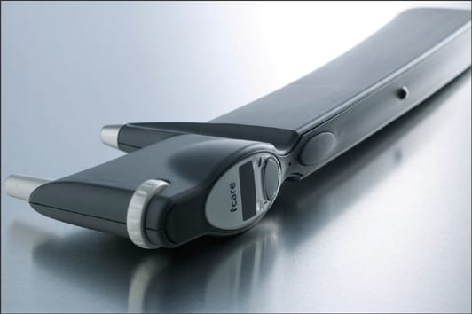 The iCare-Tonometer (Tiolat, Helsinki, Finland and distributed in the U.S. by Rhein Medical) is based on a new measuring principle, in which a very light probe is used to make momentary contact with the cornea. The measurement is barely noticed by the patient and often does not cause corneal reflex, according to the company.