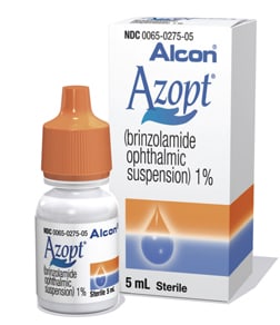 Azopt suspension is an adjunctive agent for additional IOP lowering. Topical carbonic anhydrase inhibitors, like Azopt suspension, provide consistent IOP control throughout the day and night, without the concern of systemic side effects or peak and trough fluctuations between doses. Azopt suspension is indicated in the treatment of elevated IOP in patients with ocular hypertension or open-angle glaucoma. The recommend dose is one drop in the affected eye(s) t.i.d. The most frequently reported adverse events associated with Azopt suspension were blurred vision and unusual taste reported in 5% to 10% of patients.