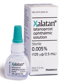 Pfizer Ophthalmics■ Xalatan (latanoprost ophthalmic solution) is the number one prescribed IOP-lowering agent, and is indicated first-line for the reduction of elevated IOP in patients with open-angle glaucoma or ocular hypertension. With more than a decade of clinical experience, Xalatan provides the powerful IOP lowering expected from a prostoglandin, and proven tolerability with the lowest incidence of hyperemia in its class. Xalatan is the only PG with published 5-year efficacy and safety data. Studies demonstrate that Xalatan is the proven PG therapy that patients can stay on longer (Reardon G et al. Patient persistency with topical ocular hypotensive therapy in a managed care population. Am J Ophthalmol. 2004;137(suppl):S3-S12.)